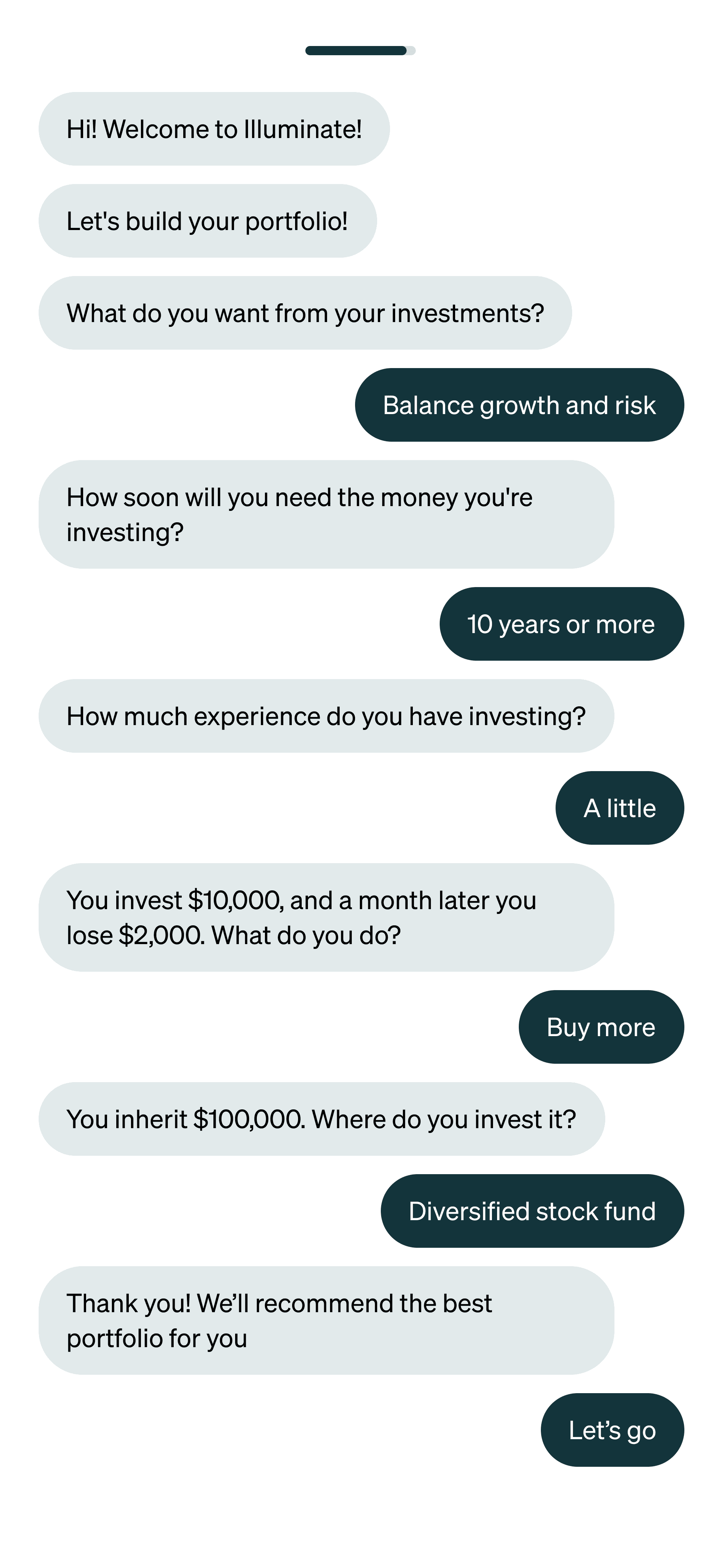 Invest in under 5 minutes with as little as $20. We'll recommend an investment portfolio and help you open your investment account.