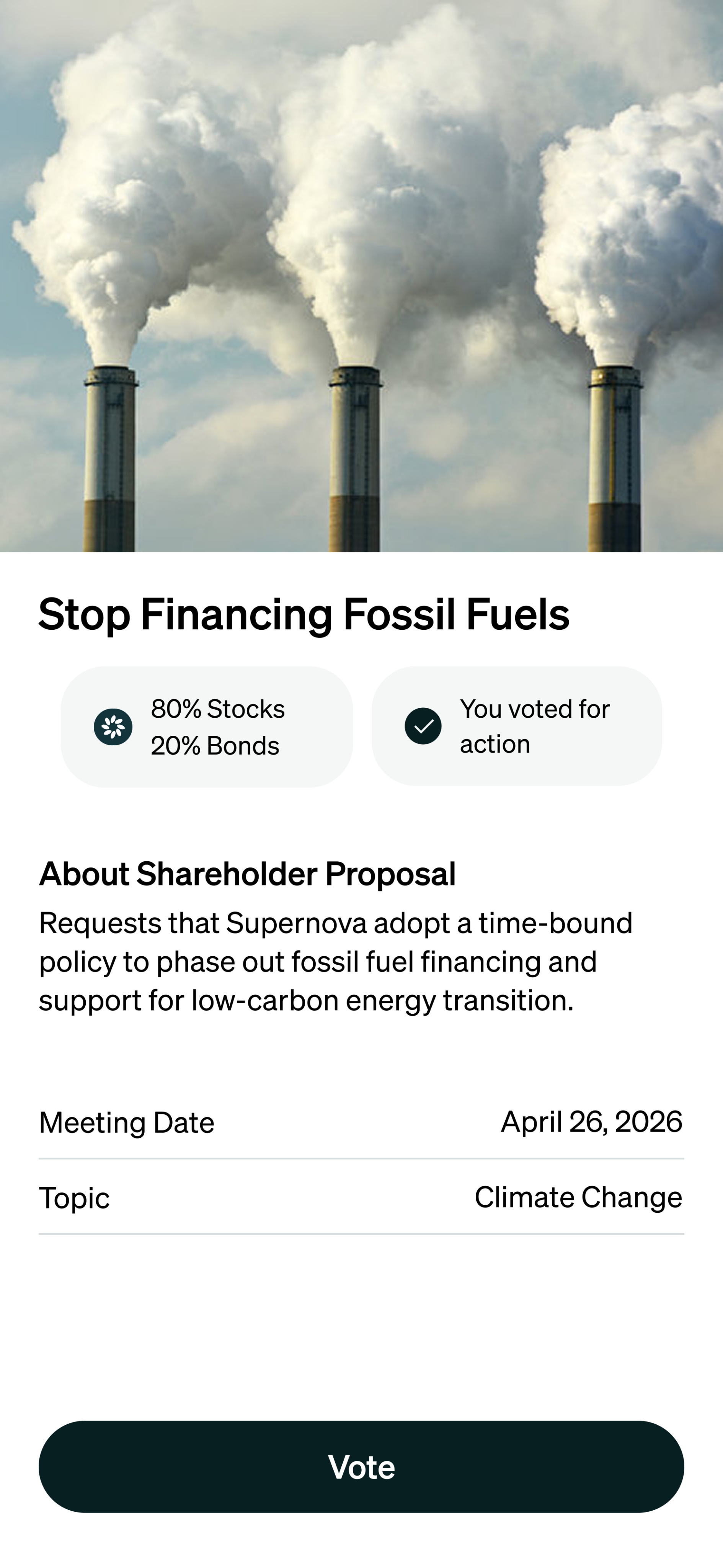 Illuminate is an impact-driven money manager for people and planet. We see investment opportunities in companies advancing sustainability and recognize that risks caused by climate change, both today and in the future, remain mispriced by the market. Voting and engaging with the companies we own is a powerful tool to drive change and influence the direction of our investments. Get started in under 5 minutes with as little as $20.